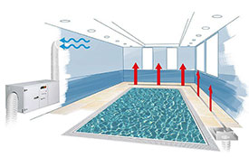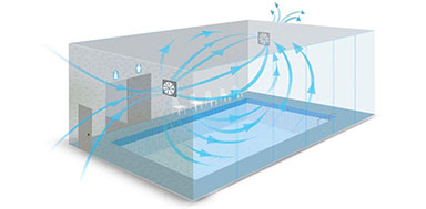 Проектируем и внедряем системы при которых в бассейне соблюдается воздушный обмен. С технической точки зрения, они выполняют интеллектуальную технологию кондиционирования воздуха, при которой происходит быстрое осушение воздуха.